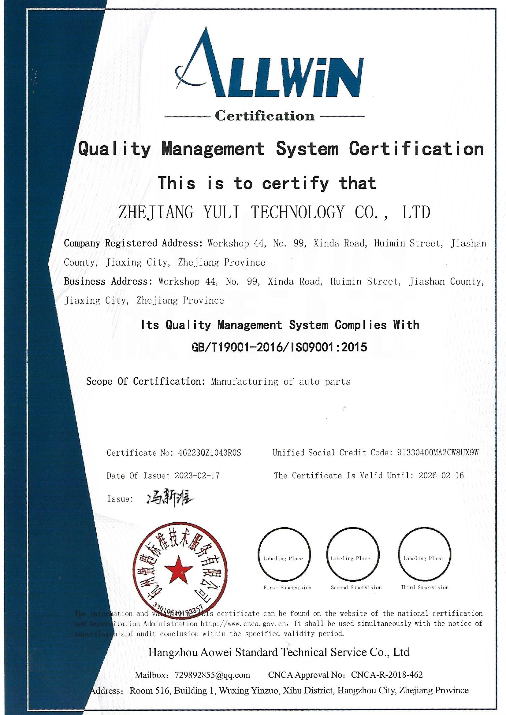 您的位置: 首页 -> 公司荣誉 -> 质量管理体系认证证书-浙江誉利科技股份有限公司